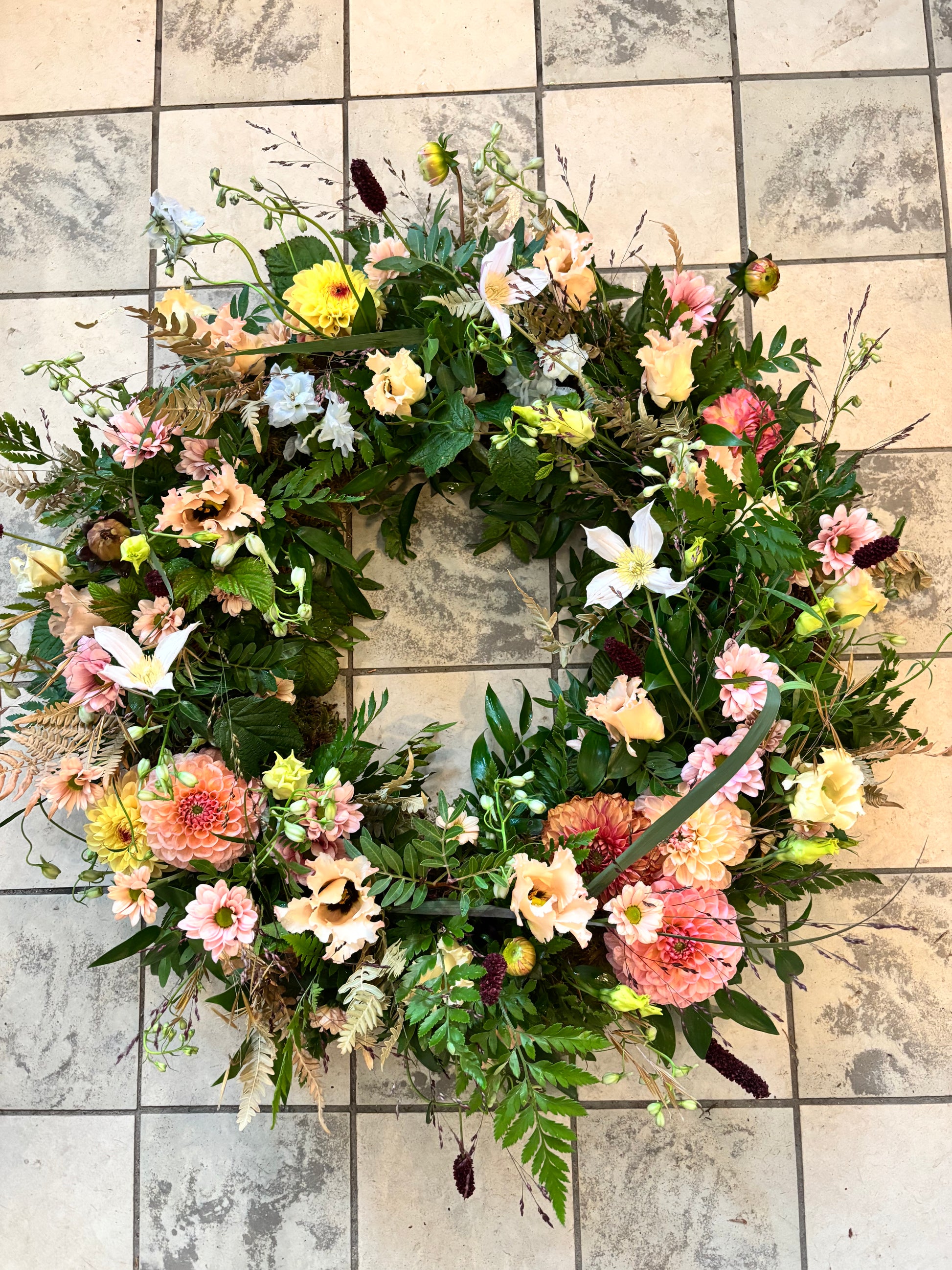 Priset avser dekoration med säsongens vackraste blommor varierar beroende på storlek och modell. Kontakta mig för prisförslag och önskemål om uttryck, blomval och färger för det allra vackraste avskedet.