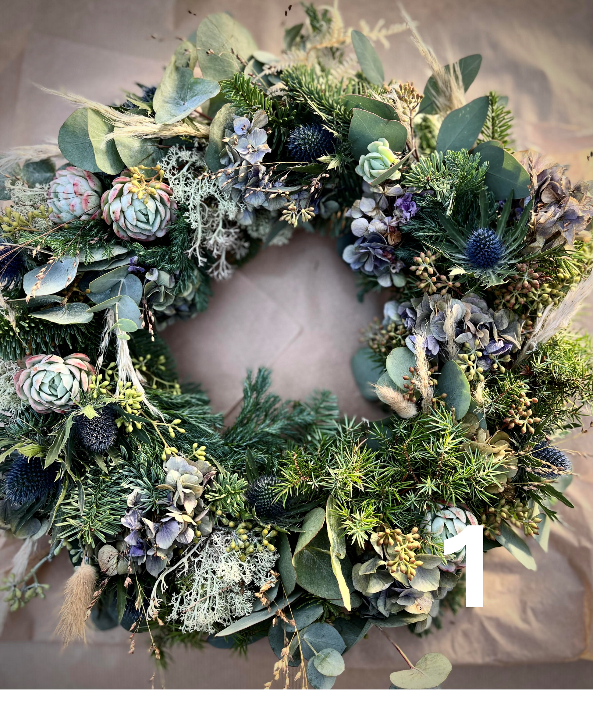 Kransar för alla tillfällen och säsonger. Du kan beställa vackra hållbara kransar skapade med säsongens mest hållbara blommor och växter. Utseendet på kransarna kan variera beroende på materialtillgången.