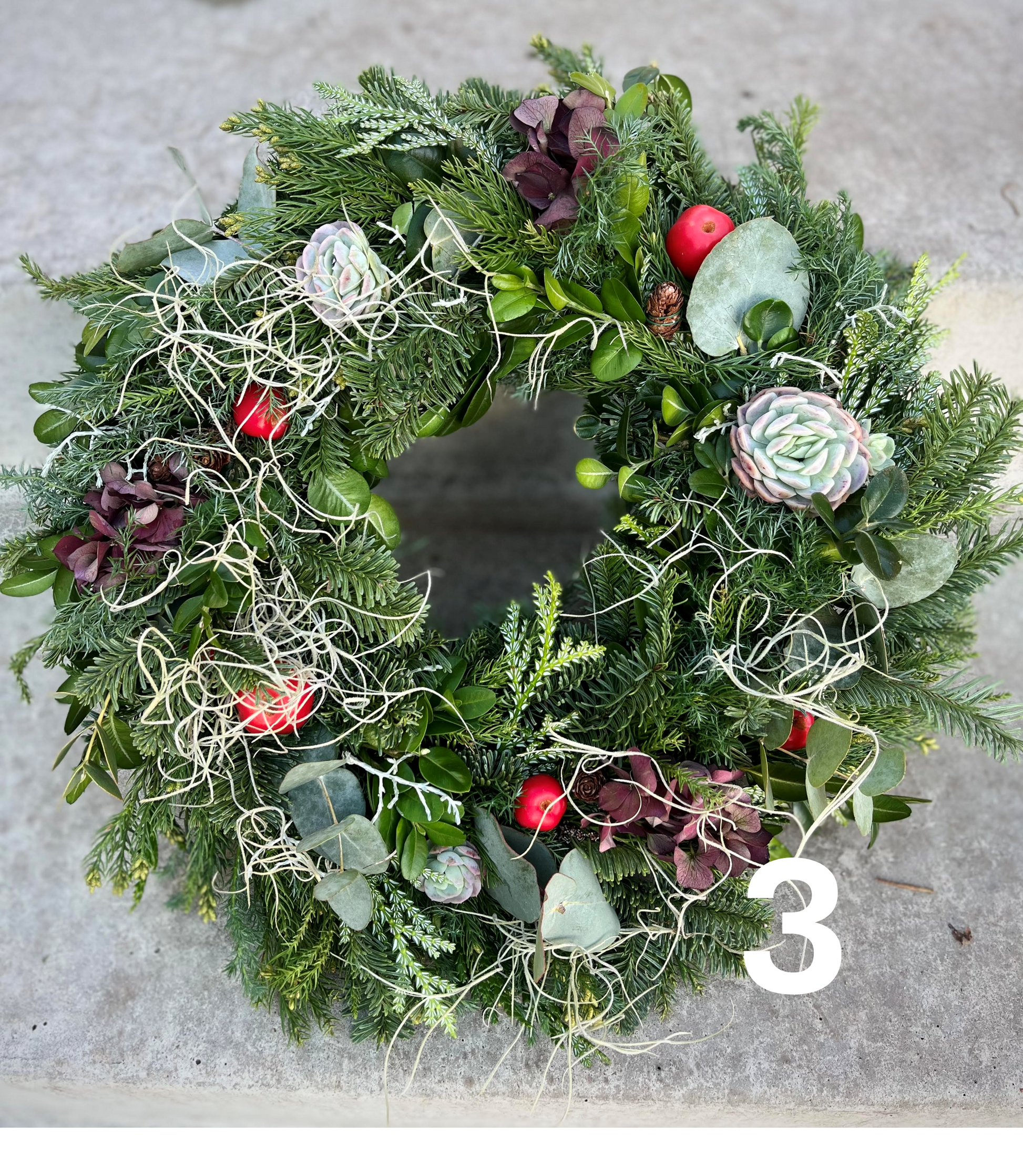 Här hittar du ett urval av kransar som vi skapar. Har du specifika önskemål om storlek (vi skapar kransar i alla storlekar), material, färg eller uttryck så kontakta mig så får du din krans precis som du vill ha den. Ange dina önskemål i textfältet i varukorgen, kom förbi eller ring 0709293431.