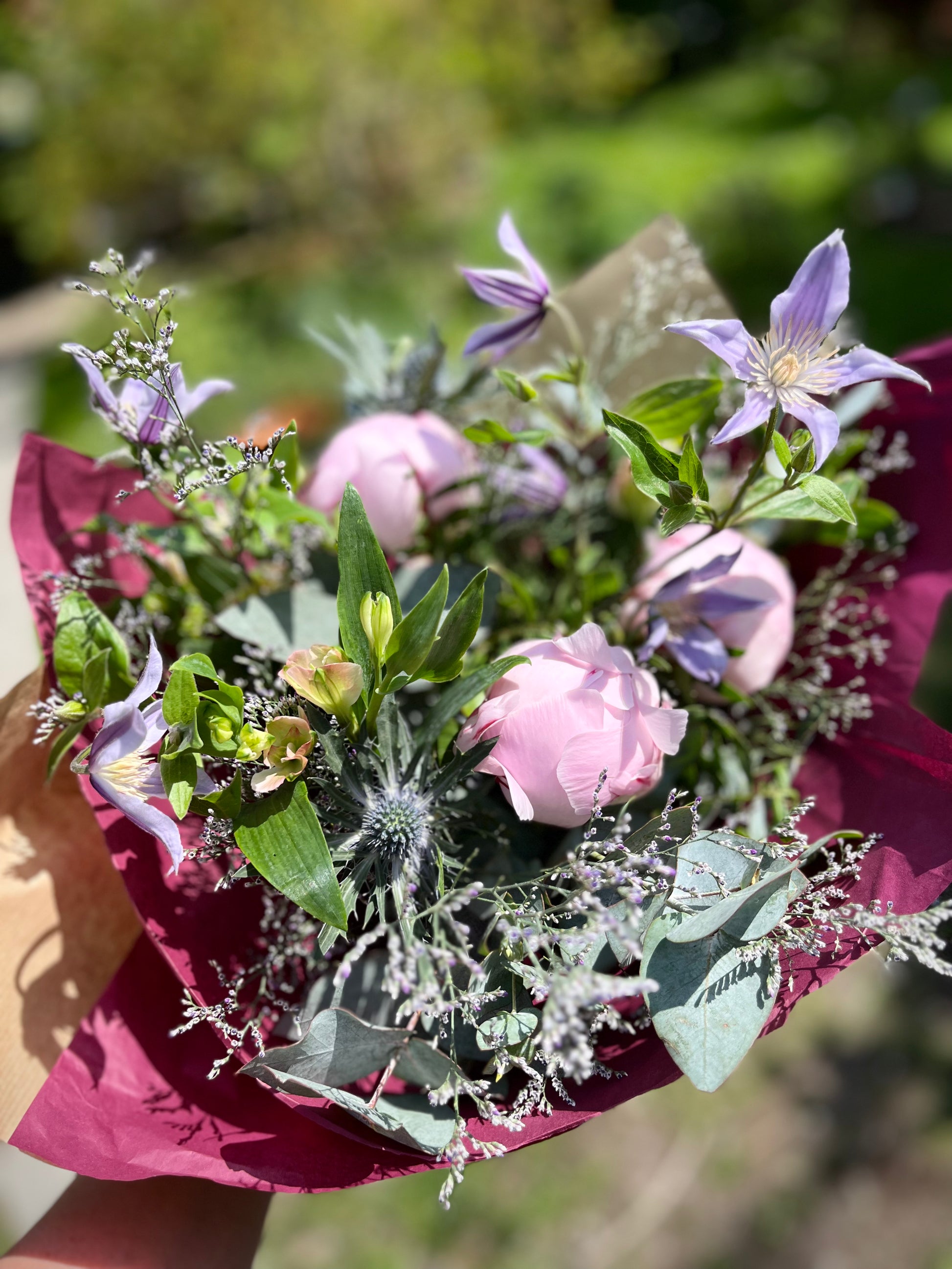 Du får buketter som är skapade med säsongens vackraste och mest hållbara blommor. Alla buketter är skapade med tidlösa, vackra snittblommor som ska passa alla. Har du önskemål så meddela oss det.